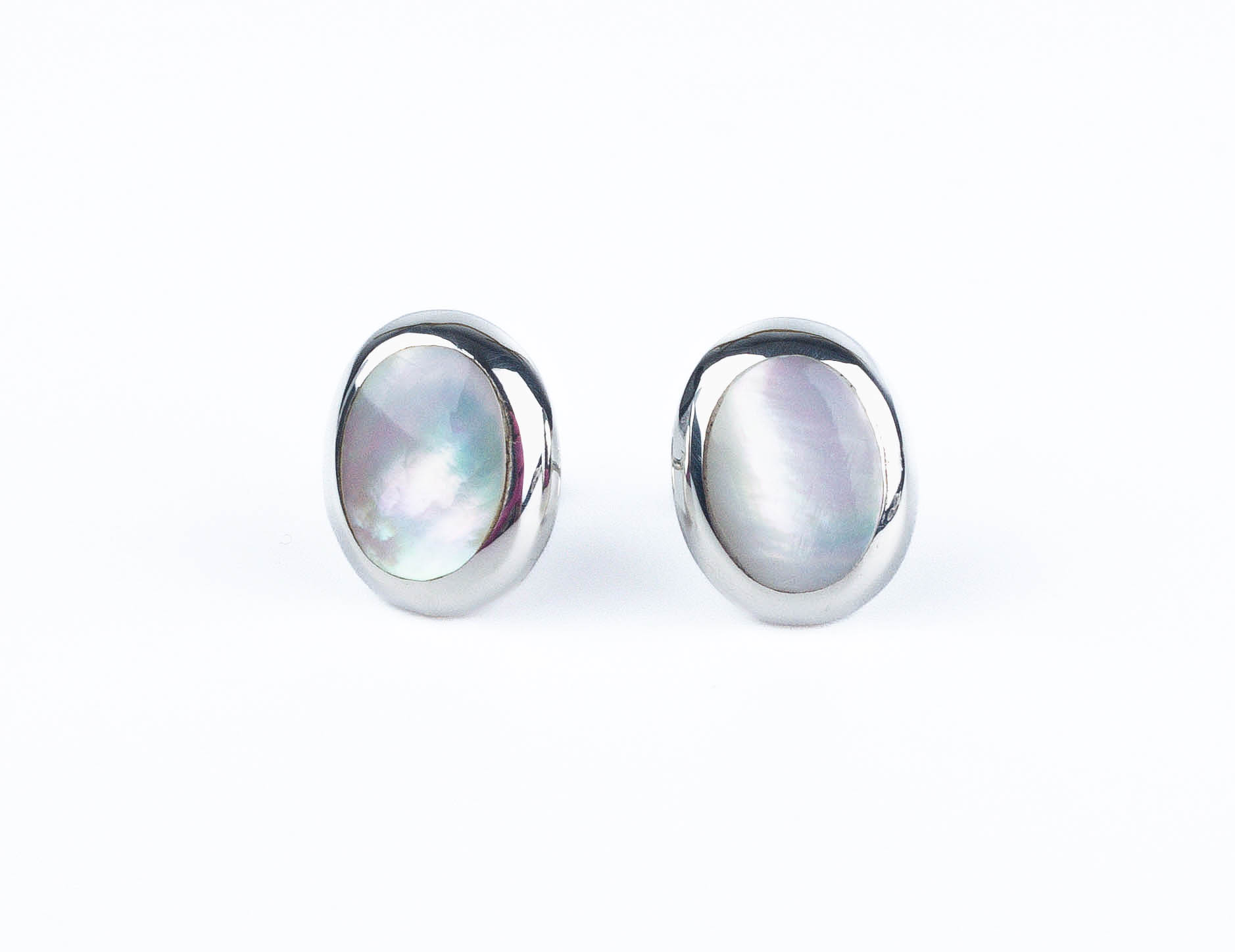 Kolczyki, z klasycznym zapięciem sztyft, zaprojektowane zostały z myślą o kobietach ceniących dyskretną elegancję. Ich owalny kształt, wypełniony przepiękną masą perłową, odbija światło, tworząc subtelny blask przy każdym ruchu głowy. To kolczyki old money, które przyciągają uwagę swym klasycznym pięknem, nie przytłaczając przy tym swoją obecnością.