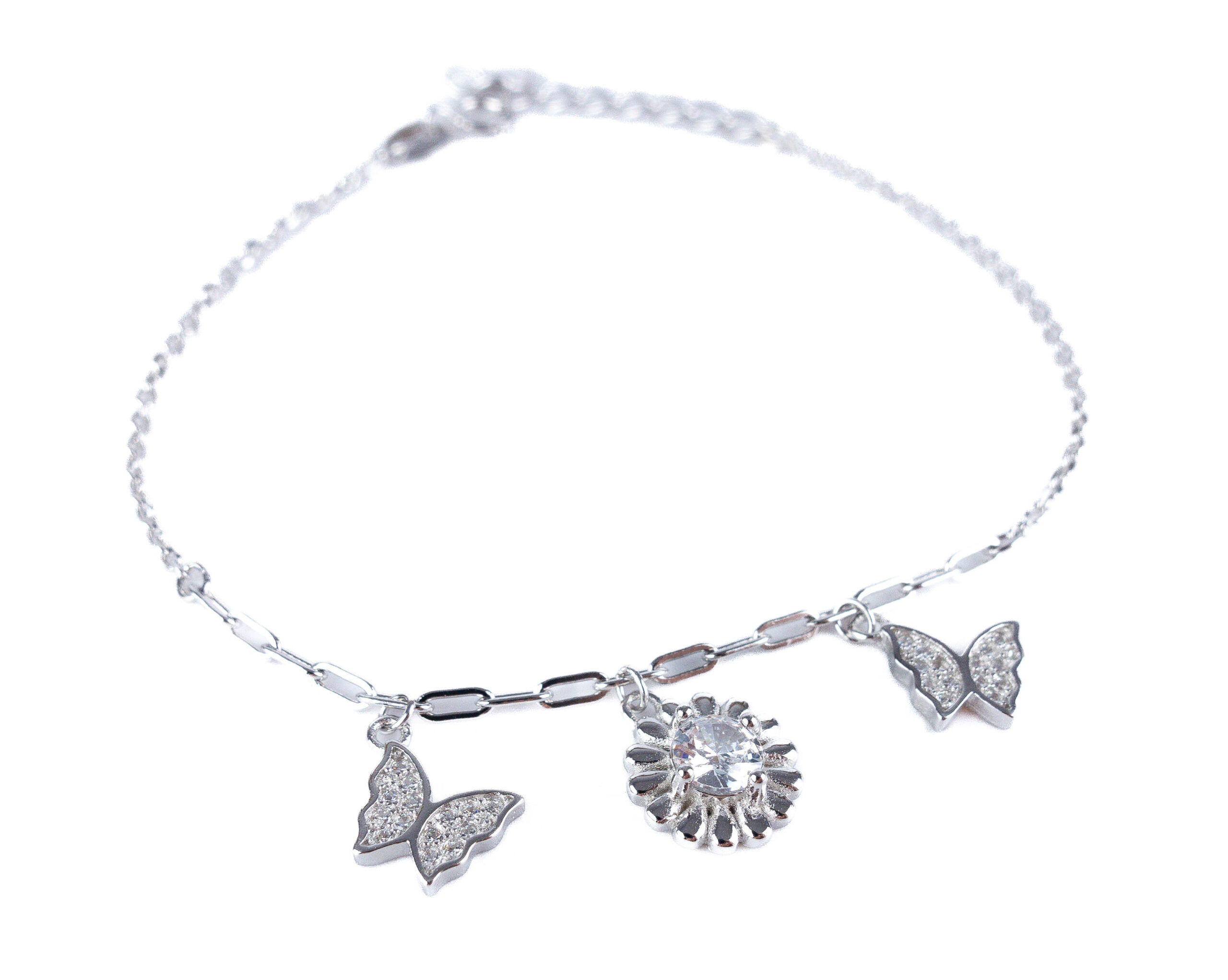 Napisz pierwszą opinię o „Srebrna bransoletka kwiat i motyle z cyrkoniami”